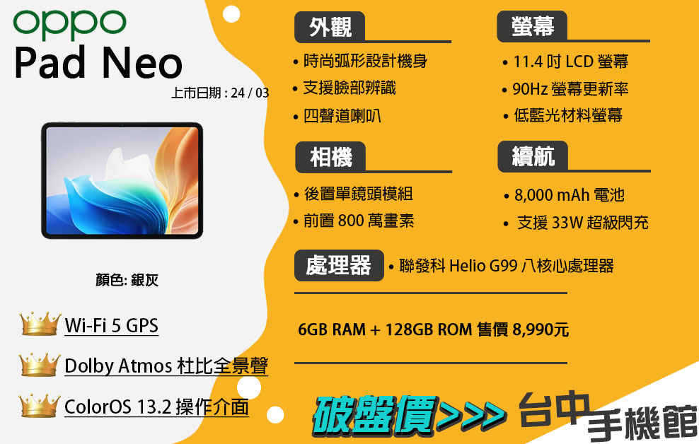 💟 商品頁面 OPPO Pad Neo 6GB+128GB OPPO Pad Neo 大尺寸影音平板 7:5 […]